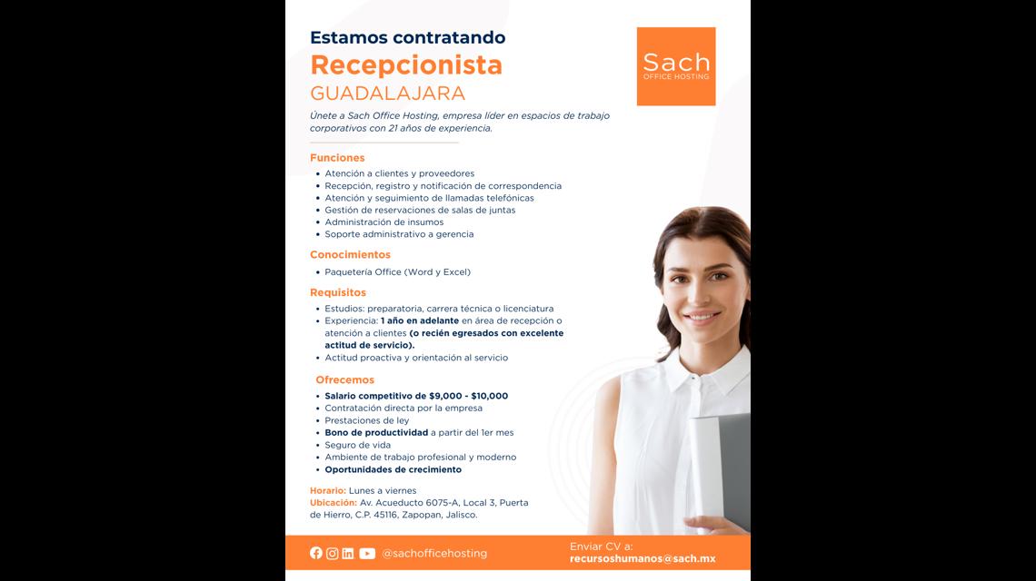 Buscamos una persona amable, organizada y resolutiva para desempeñar el rol de Recepcionista. Será la primera cara visible de la organización, encargándose de recibir visitantes, atender llamadas y apoyar en tareas administrativas.
